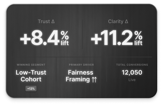Run large-scale message experiments inside real conversations. Learn what works, for whom, and where before you publish or deploy.